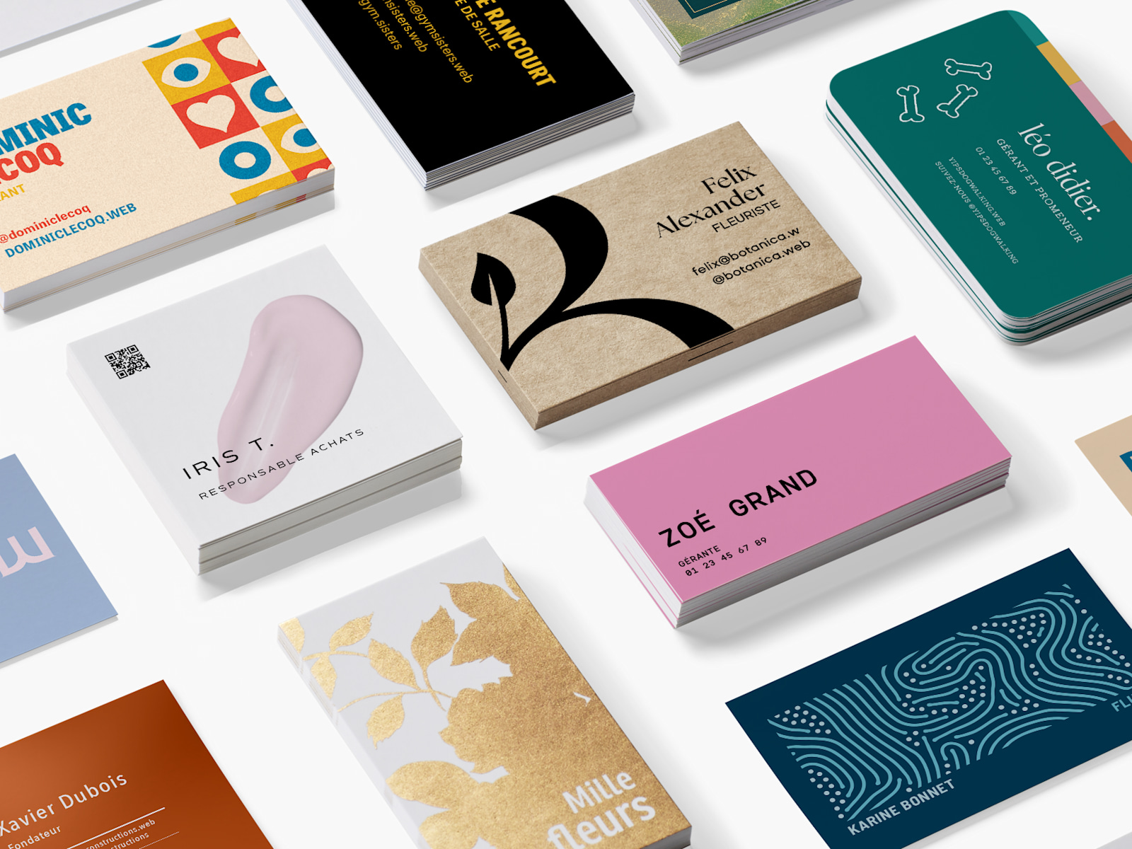 Nous offrons une large gamme d’options pour vos cartes de visite, y compris différents types de papier, tels que le papier couché de 300 g/m², 350 g/m², ou encore du papier texturé blanc ou ivoire. Vous pouvez choisir entre plusieurs finitions, comme le pelliculage mat, brillant ou soft touch, pour donner à vos cartes un aspect professionnel et raffiné. Que vous ayez besoin d’une impression en recto ou en recto verso, nous garantissons une qualité d’impression irréprochable grâce à nos machines modernes.